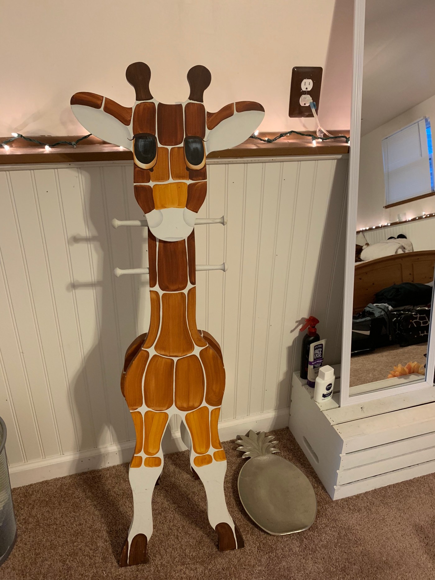 While on the college search most people are concerned about class sizes, the layout of the campus or how much it will cost. But for me, when touring schools my first question was always about the dorm rooms. I wanted to know how many people I’d be sharing a room with, how big my room would be, if i would have my own bathroom etc. I was so excited to decorate my room! Whether it be scrolling through countless Instagram pages or pinning thousands of post to a Pinterest board, I was always looking for inspiration on how to decorate my dorm room when I moved in. I can vividly remember that I was most excited to set up my room and post pictures to show off all the hard work I had put in. As each year passes, and my room gets bigger, I am still constantly looking for new things to add to my space. As we all know, college already cost an arm and a leg to attend, so decorating my room was the last place I needed to be spending large amounts of money. On Pinterest I was very fortunate to find DIY crafts that would fit in well with my room. I was able to save money by finding most of what I needed at various thrift stores. One of my favorite pieces was a giraffe coat rack (pictured above). This makes a great accent to my safari themed room. Since I love giraffe’s I knew I had to have it as soon as I saw it in Goodwill. Since it was only $10 I thought it was a steal! I am not sure of the exact purpose of it, but I use it as a coat rack for the winter. This is my favorite decoration in my room and I am so glad that I was about to get it from a thrift store for such a low price.